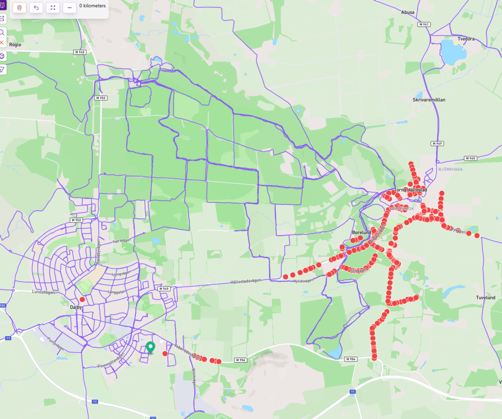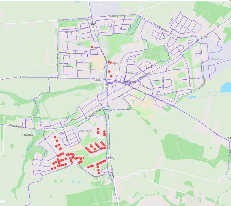 Jag har fokuserat på gatorna i Lunds kommun sedan november 2025, en stor utmaning att avverka kommunens 711 km. Men att springa 100 % på varenda gata innebär att man måste springa på några sträckor gång på gång för att nå andra gator. Då blir 711 km bara teoretisk men i verkligheten bör man räkna med minst 20 % extra.