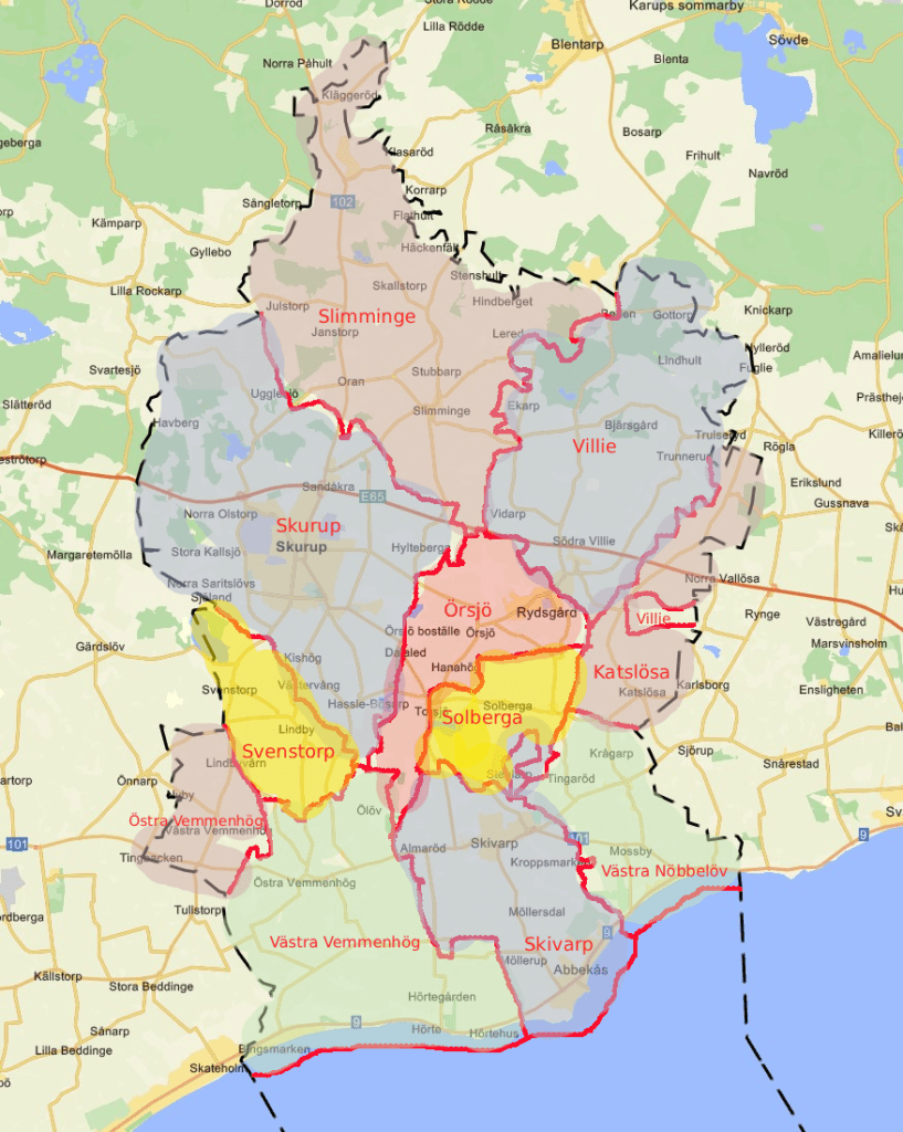 Katslösa, Skivarp, Skurup, Slimminge, Solberga, Svenstorp, Villie, VĂ€stra Nöbbelöv, VĂ€stra Vemmenhög, Ărsjö, Ăstra Vemmenhög